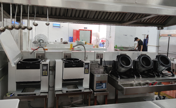 五、配套不同:商用炒菜機有配套的操作臺,底部開孔底板,便于沖洗倒水;商用機不僅是提供機器,還有各種成功案例,整套標準化解決方案(包括食材、調(diào)味品、操作等)。