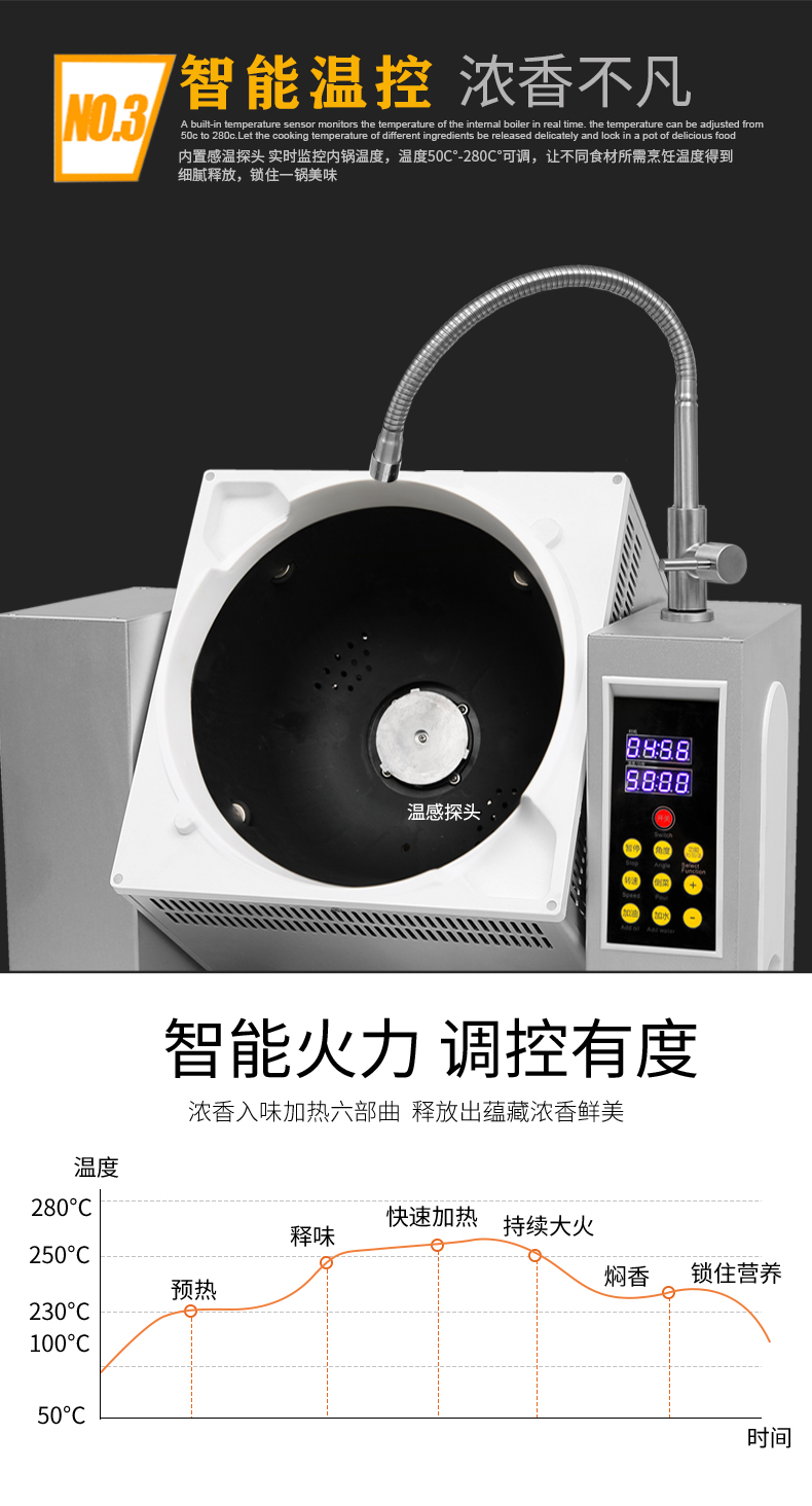 自動(dòng)精準(zhǔn)控溫,解決廚師最難掌控的火候問題 |