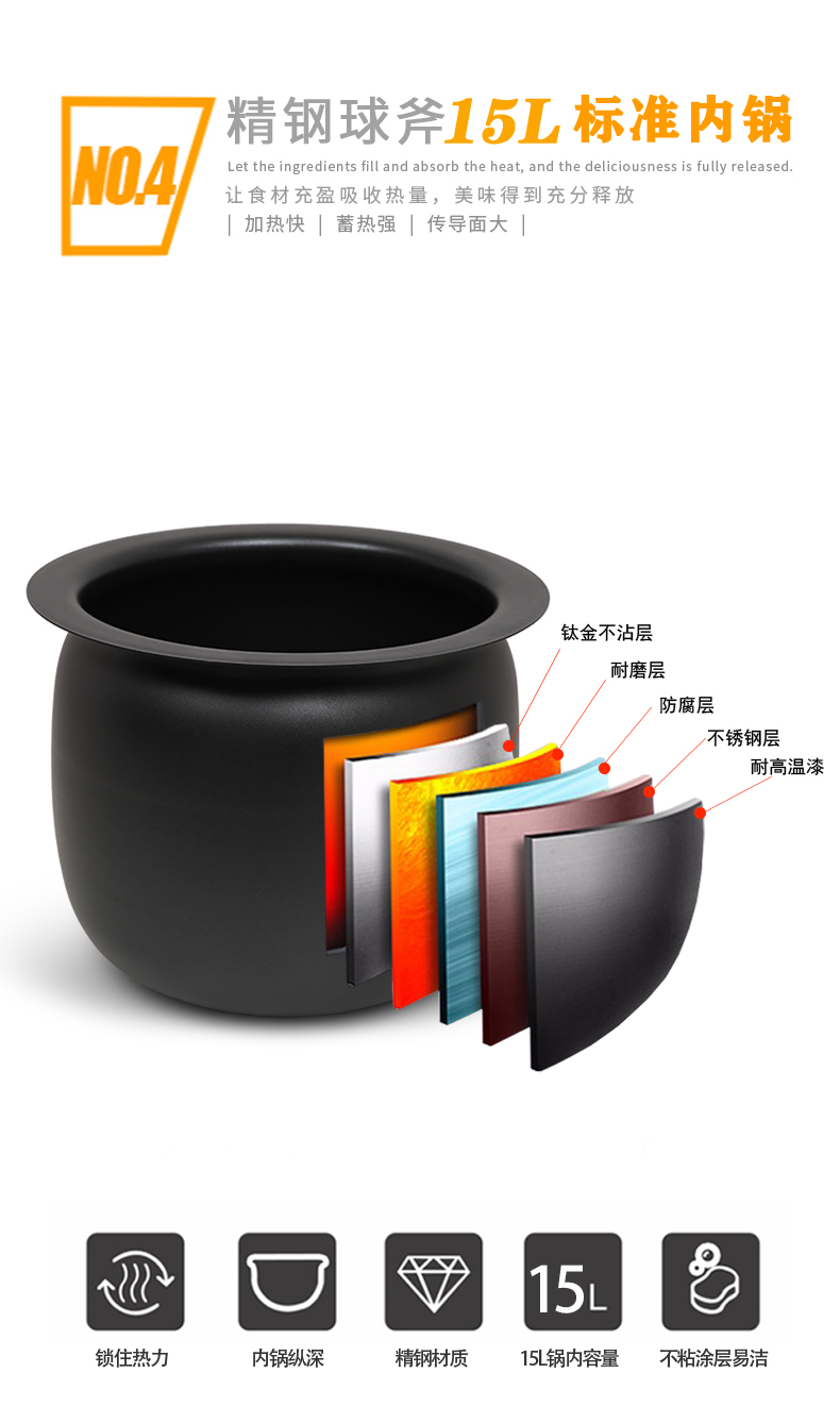 先進(jìn)的IH電磁加熱原理,加熱迅速,受熱均勻 |